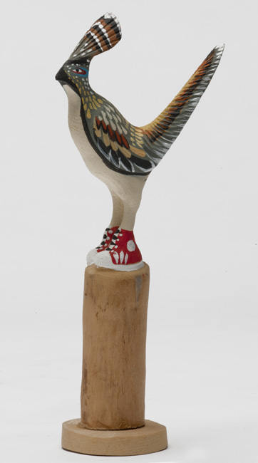 Small Roster with Red Keds on pole - Navajo Folk Art | 6.25x5x1.5 wood carving | 266.15.11 | Donated by Nancy Goodhue-McWilliam |