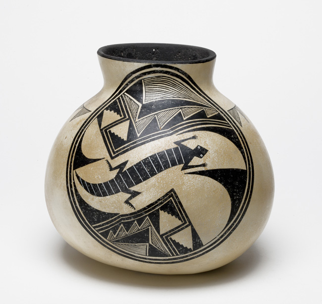 Mimbres Lizard in Landscape Gourd Pot 1989 | gourd | 408.16.08 | Donated by Gene Sasse |