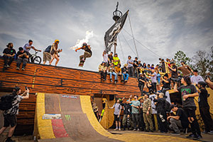 Jones’ vision for Swampfest ensures an experience that exceeds all expectations, albeit in the most unpredictable ways. Participants encounter semi-skateable obstacles, graffiti-covered castles, and makeshift boats, all while dodging homemade fireworks. The event is notorious for its high-risk activities, often resulting in more ambulance rides than one can count.
