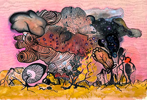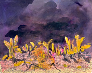 Wild Things is a body of works that explores the enigmatic essence of flora and “funga”. I like observing their teachings as a system and species on their own, exploring the moments when the natural world undergoes a transformative journey to make me wonder about growth, decay and the unknown. Through this work I explore metaphors of the delicate interplay between life and mortality. I consider this series a contemplation of the profound connections that tether humans to nature's cycles and what emerges when we embrace the ever-shifting flow of life in all its facets. In my artistic path, I’ve learned to appreciate the beauty in the imperfect, the unfinished, and the evolving. This mindset has allowed me to loosen my grip on preconceived notions of what art should be and has encouraged me to explore my artistic language and experiment with it. What I find most exciting about my work is the freedom I gift myself while working on a project. I Art became my shelter and a medium through which I process and communicate my emotions and inner workings. Drawing inspiration from the intricate world of macro photography, I blend it with my observations of human behavior, nature, and emotions. During my walks, I capture tiny My studio is a vibrant laboratory where I use my hands and my most introspective moments to express myself, using the medium I decide to explore in the moment. Whether it's acrylic paint, watercolors, oil sticks, graphite, wax, clay, or textiles, I find myself in the constant search to |