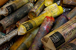 "Music is God's glue, it holds the Universe together." This is how Maurice Quillinan describes the soundtrack to his creative practice a philosophy that extends to his entire approach to artmaking in his Limerick, Ireland studio. "When I close the door it's just me and the dogs and the work and music and no phone," he explains. "It's the best place in the world just to concentrate on painting and drawing." |