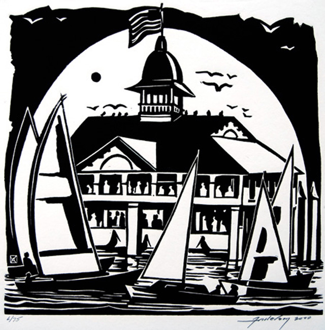 Newport Beach Pavilion | linoleum block print | 168.15.01 | Donated by the artist |
