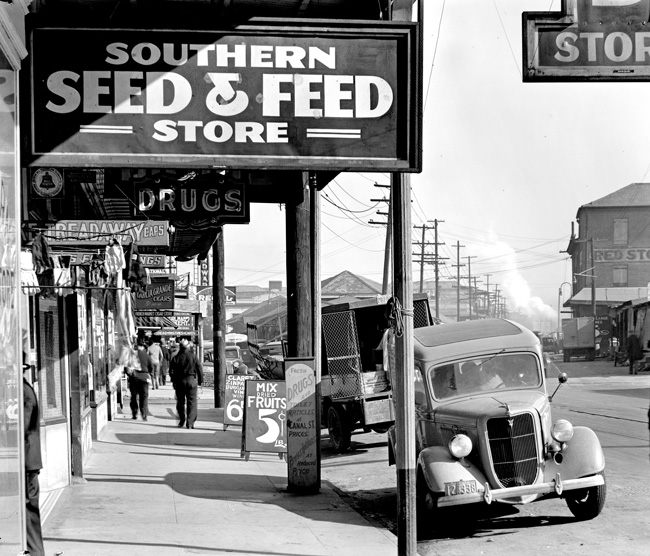 Waterfront in New Orleans, Louisiana - French market sidewalk scene 1935 | archival pigment | 240.15.03 | From Library of Congress |