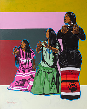 There are currently 574 federally recognized Native Nations within what is now referred to as the United States. Additionally, eighteen states officially acknowledge an additional 82 nations. Among these federally recognized Sovereign Native nations, 109 have deep-rooted connections to California, a region they've called home for countless millennia. It is estimated that before Western contact, over eighteen million Native individuals inhabited what is now the United States. However, by the turn of the twentieth century, the Native population had drastically dwindled, with less than 200,000 Native people across the United States, and a mere 25,000 in California. To put this in perspective, Pomona's current population stands at 151,000. The Native population decline can be attributed to settler colonialism, armed conflicts, diseases, land dispossession, removal policies, and state-sanctioned genocide. The history is one marked by relentless attempts to erase Native culture through policies such as removals, incarceration, boarding schools, religious persecution, slavery, indentured servitude, assimilation, reorganization, paternalism, and termination. Despite these challenges, Native Nations persist in defending their sovereignty, with their population experiencing a resurgence, and their diverse and resilient cultures persevering. According to the most recent US Census, there are now 9.7 million individuals in the United States who identify as Native Americans. Of this population, 49% exclusively identify as American Indian or Alaska Native, while 51% identify as Native American/Alaska Native in combination with one or more other racial backgrounds. Notably, California boasts the largest Native population of any state in the US, totaling 1.4 million. San Diego County, in close proximity, houses more reservations (18) within its borders than any other state in the country. California's linguistic diversity shines through with over 100 distinct Native languages spoken, making it the most linguistically diverse area in North America. The exhibit "Sustained Resilience" serves as a celebration of Native resistance and cultural resilience. The showcased artists provide but a glimpse into the vast tapestry of Native America. They were selected for their ability to bridge cultural traditions with contemporary innovation, reflecting an unbroken connection to their cultural heritage while embracing bold, contemporary forms. This movement is not a linear departure from history; rather, it is a cyclical journey that maintains continuous ties with Native roots. "Sustained Resilience" embodies this enduring spirit. Dr. Eric Tippeconnic (Comanche Nation) |