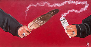 In the world of art, some individuals are driven by an insatiable curiosity and an unwavering passion for creative expression. Monica Zavala is one such artist, whose journey began at a young age with an unquenchable thirst for illustration and artistic discovery. From the earliest moments of her childhood, Monica’s fascination with illustration took root, inspired by the magic of television shows like “Pappyland” and her cherished “How To Draw” books from Blitz Comics. In these formative years, she embarked on a journey of self-discovery, teaching herself new styles, honing her craft, and nurturing her innate talents. Her artistic path was marked by an unwavering determination to explore the world of visual storytelling, one line and one stroke at a time. Now, as a student of Arts, Media, and Design at California State University of San Marcos, Monica’s journey has found new avenues for exploration and growth. Her academic pursuits have provided her with a structured foundation for artistic development, allowing her to refine her skills and expand her creative horizons. Yet, her quest for knowledge extends beyond the classroom, as she also embraces the ever-evolving landscape of online education through the “University of YouTube.” Monica’s artistic endeavors are a testament to her belief that the sky is the limit. Her journey is a testament to the power of self-discovery, a relentless drive to learn, and an unquenchable desire to create. In her work, you will find the embodiment of passion, curiosity, and boundless potential. We invite you to explore Monica Zavala’s evolving world of art, where each stroke of the brush and each line drawn carries with it a story of discovery, growth, and limitless artistic possibility. Monica Zavala (Tongva & Acjachemen) |