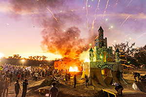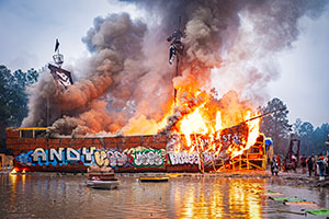 Swampfest thrives on the very dangers that most event organizers dread. The festival reaches its peak when fireworks start zipping through the crowd, occasionally landing on unsuspecting participants. The grand finale of the weekend is the annual bonfire, where every piece of wood used to create this code enforcement nightmare is tossed into a pit and set ablaze, leaving behind a scorched landscape dotted with nails.