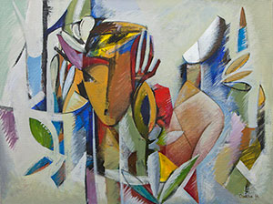 Vartan Ohanian arrived in America from Armenia in 1980 with a formation few painters carry. He had graduated from the Terlemezian Art School in Yerevan, completed two years of postgraduate study at the Fine Arts and Theatre Institute of Yerevan, and extended his training further at the Estonian State Institute of Fine Arts. Three countries. Three institutions. A deep and disciplined understanding of what a composition can hold. The paintings in this exhibition are rooted in Cubism but not governed by it. The palette runs warm, with moments of saturated color arriving inside carefully composed fields. The forms are geometric and interlocking, yet something organic lives inside each one. His training is visible in every canvas. So is something harder to teach. The sculptures in the room remind you where that training began. Vartan is also a blacksmith. The monumental commissions of his earlier life included a memorial to the Armenian struggle for liberation in a public square in Yerevan, and a 75-foot chandelier forged for an architectural landmark in St. Petersburg, rising from the first floor to the top of the building in a single suspended gesture. He calls it his greatest accomplishment. "If you do a big monumental work and then you do small things," he said, "it is never the same." The paintings gathered here are what he makes now. Intimate in scale, precise in their ambition. And behind them, always, the larger longing. "Right now, my energy goes into painting," he said, "but that is not enough. I need to start my real work, to let me expel my feelings. This is my love. It is my life." We have chosen not to place descriptive labels beside the work in this exhibition. What Vartan has made carries its own conversation. Your part of it is yours to discover. |